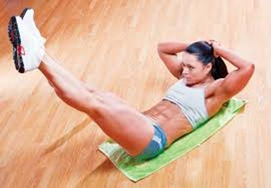 Ezt a hasizom gyakorlatot valamiért nagyon szeretem. Lábakat felemeljük, összezárjuk, testtel derékszöget zárnak be. Kézbe veszünk egy kis kézi súlyt, és meg próbáljuk megérinteni úgy a lábfejünket, hogy közben zsugor felüléseket végzünk.