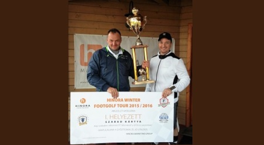 Véget ért az első téli bajnoki szezon, azaz a Hinora Winter Footgolf Tour. Azt előre tudni lehetett, hogy a hölgyeknél Nagy Niki (FTC Footgolf), a junioroknál Zsuppán Donát (Outsiders), a szenioroknál pedig Balázsi Csaba (BFGT, a képen a névadó szponzorral, Hinora Ferenccel) bizonyult a legjobbnak a nyolc állomásos sorozatban, ahol a hat legjobb eredményt számít a végelszámolásnál.