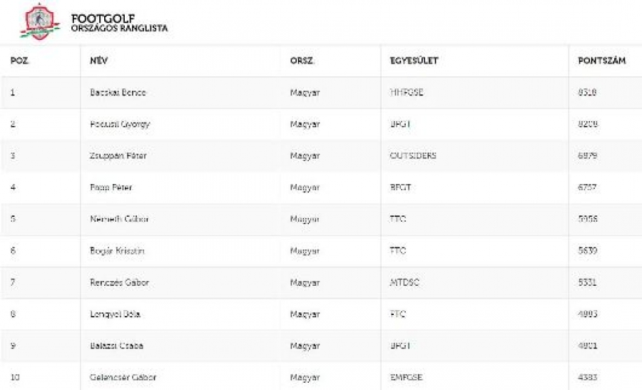 A 2016-os tesztidőszak és fejlesztési munkák után a Magyar Footgolf Szövetség a mai naptól bárki számára könnyen elérhetővé teszi az országos ranglistát.