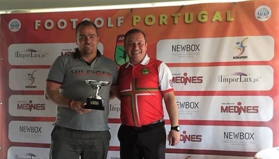 Az első alkalommal rendezett Sunny Portugal Footgolf Open abszolút hetedik, szenior első helyén végzett a BFGT Spanyolországban élő játékosa, Tajtyi Róbert (balra). Az Arrábida Golf Resort pályáján rendezett verseny FIFG 50 pontos volt.